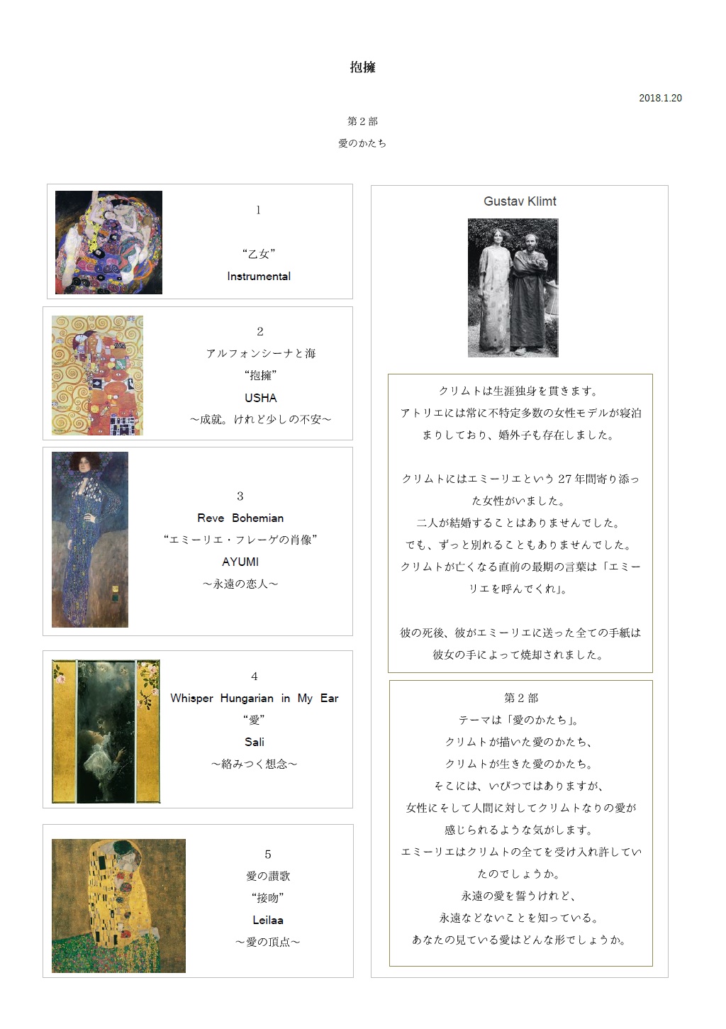 本当はプロジェクタで舞台上に曲に対応する絵画を映し出したかったのですが、光りの位置が演者の健康を害するほどの位置や強さになってしまったり、演者には被らないけれど弱すぎて見えなかったり、天井に映すとなると前列のお客様には全く見えなくなってしまったり・・・泣く泣く断念。